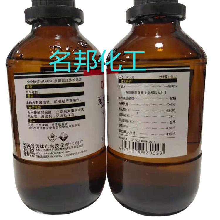 | 无水甲酸 | 分析纯AR | 500ml | 98% | 天津 |